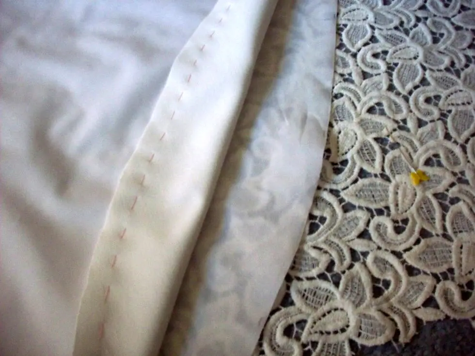 قبل از شروع به دوخت، باید استر و گیپور را بهخوبی به یکدیگر ثابت کنید. برای این کار میتوانید از کوکهای موقت یا سوزنهای مخصوص استفاده کنید. دقت کنید که پارچه گیپور کش نیاید یا جمع نشود. این مرحله از آموزش دوخت لباس گیپور با استر باعث میشود تا هنگام دوخت نهایی، دو لایه کاملاً منطبق باقی بمانند.