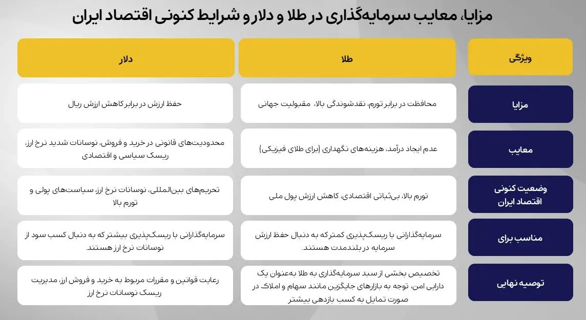 برای تصمیمگیری بهتر، پیشنهاد میکنیم مقاله خرید تتر یا طلا و مقایسه سود آنها در ایران را مطالعه کنید.