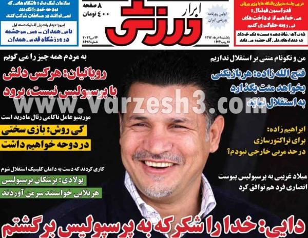نیم صفحه اول روزنامه های ورزشی ۱۳۹۲/۰۳/۰۵