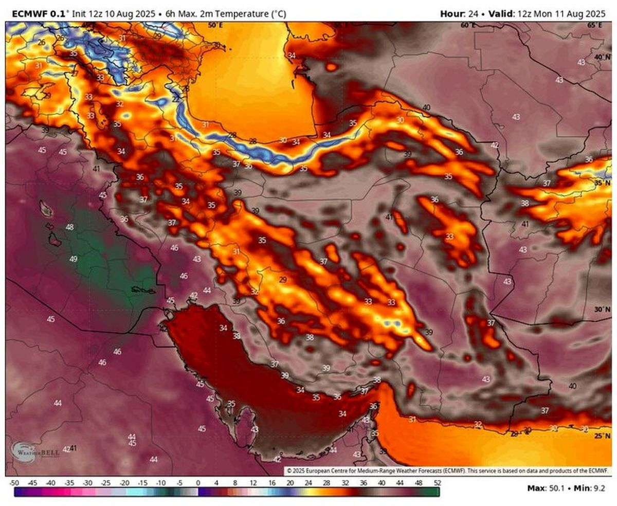 ضیائیان ادامه داد: روزهای سه‌شنبه و چهارشنبه (۲۱ و ۲۲ مرداد) در شمال استان‌های آذربایجان غربی و شرقی، اردبیل، برخی نقاط سواحل دریای خزر، خراسان شمالی و ارتفاعات البرز افزایش ابر، وزش باد و بارش پراکنده انتظار می‌رود. این شرایط روز پنجشنبه (۲۳ مرداد) نیز در شرق سواحل دریای خزر، خراسان شمالی و ارتفاعات البرز ادامه خواهد داشت، در حالی که دیگر مناطق کشور جوی پایدار خواهند داشت.