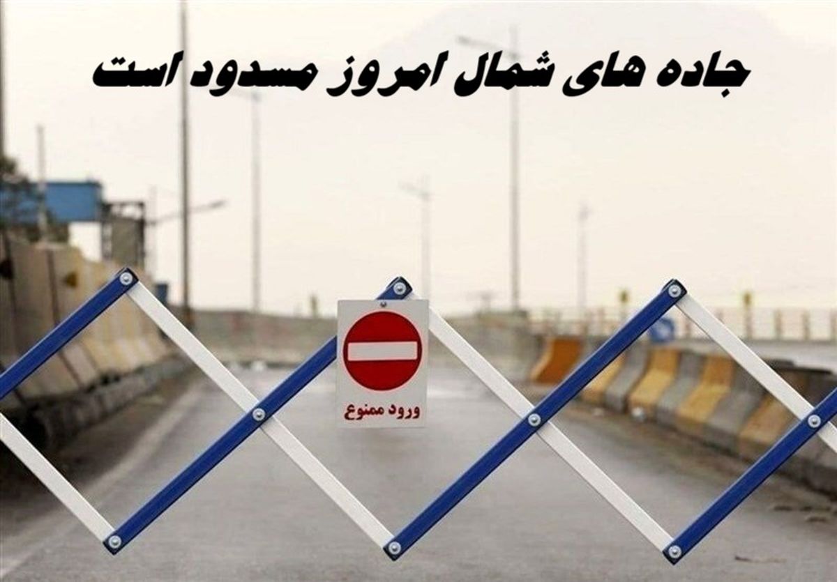 آخرین وضعیت ترافیکی جادههای کشور مشخص شد. جاده چالوس و آزادراه تهران–شمال تا ساعت ۱۹ امروز مسدود است. مسدود شدن جاده های شمال بدلیل تکمیل تونل کمرزرد است.