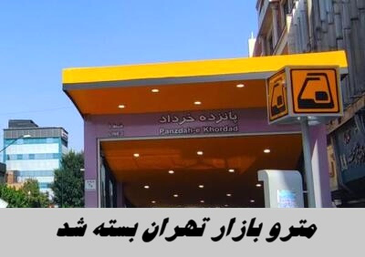 مترو بازار تهران فعلا بسته شد. مترو ایستگاه پانزده خرداد فعلا در بازار تهران مسافرگیری ندارد.