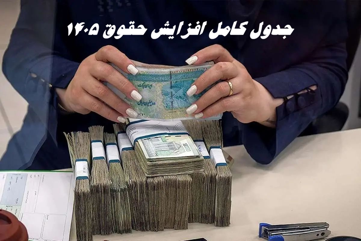 جدول کامل افزایش حقوق ۱۴۰۵ منتشر شد. افزایش حقوق ۱۴۰۵  از ۲۰ تا ۴۳ درصد به صورت پلکانی معکوس خواهد بود.