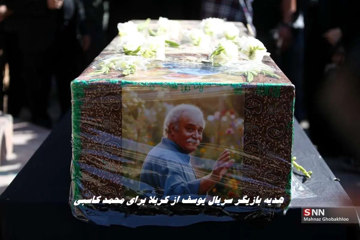 به گزارش پارس نیوز ،در جریان مراسم خاکسپاری محمد کاسبی، بازیگر پیشکسوت سینما و تلویزیون و نقشآفرین در سریال ماندگار «یوسف پیامبر»، یکی از حاضران با اهدای پرچمی متبرک از حرم امام حسین (ع) به مزار او، صحنهای معنوی و احساسی رقم زد.